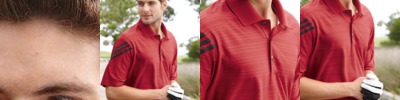 Super cool polyester pique knit with contrast color three-stripe application detail on the sleeves.